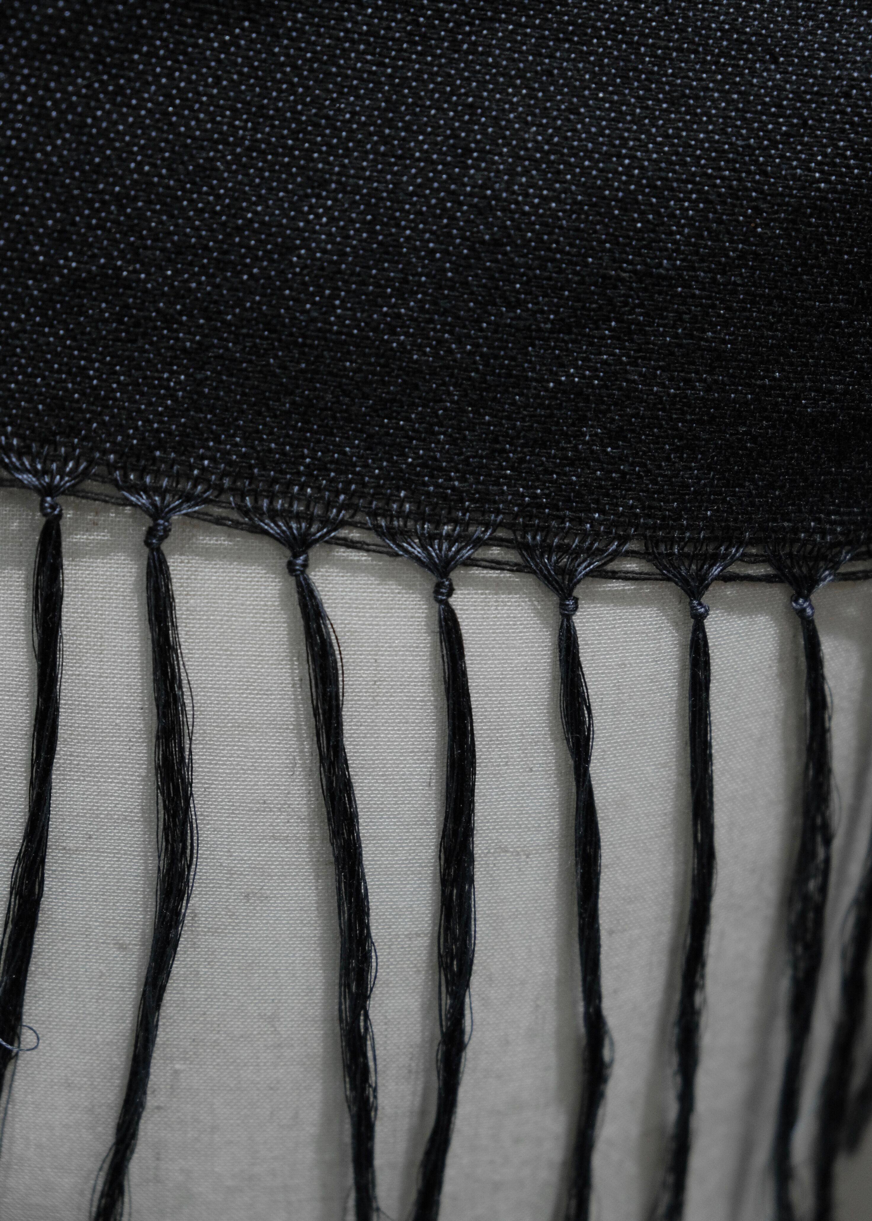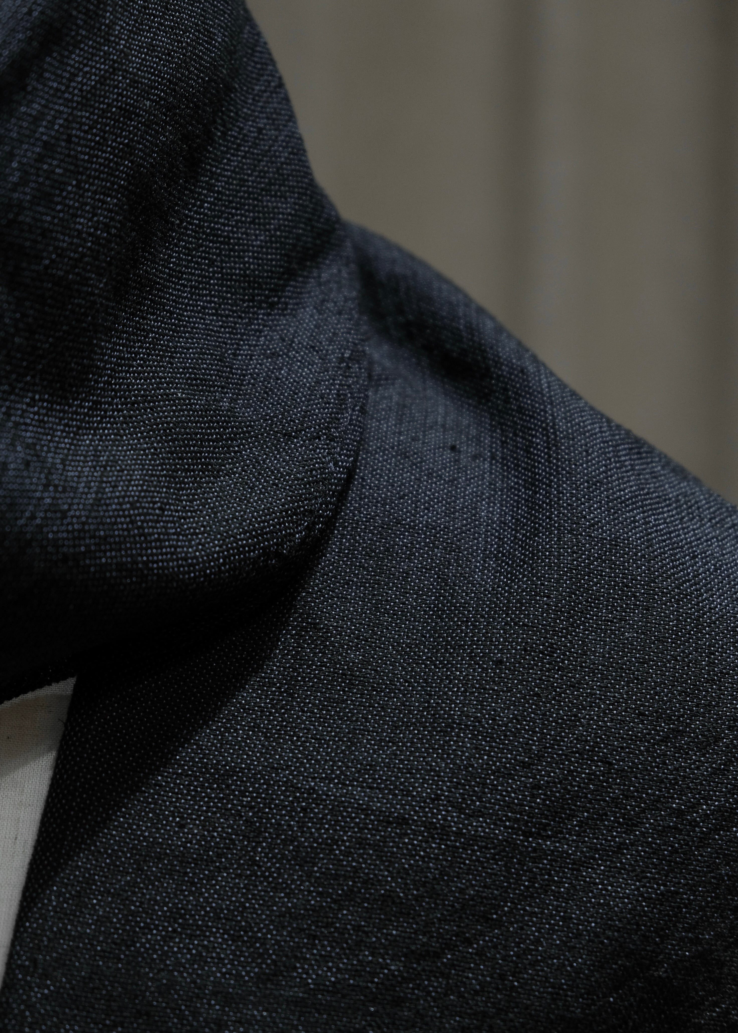 経糸のフィラメントシルクはネイビーとブラックを使用して奥行きのある色味に。