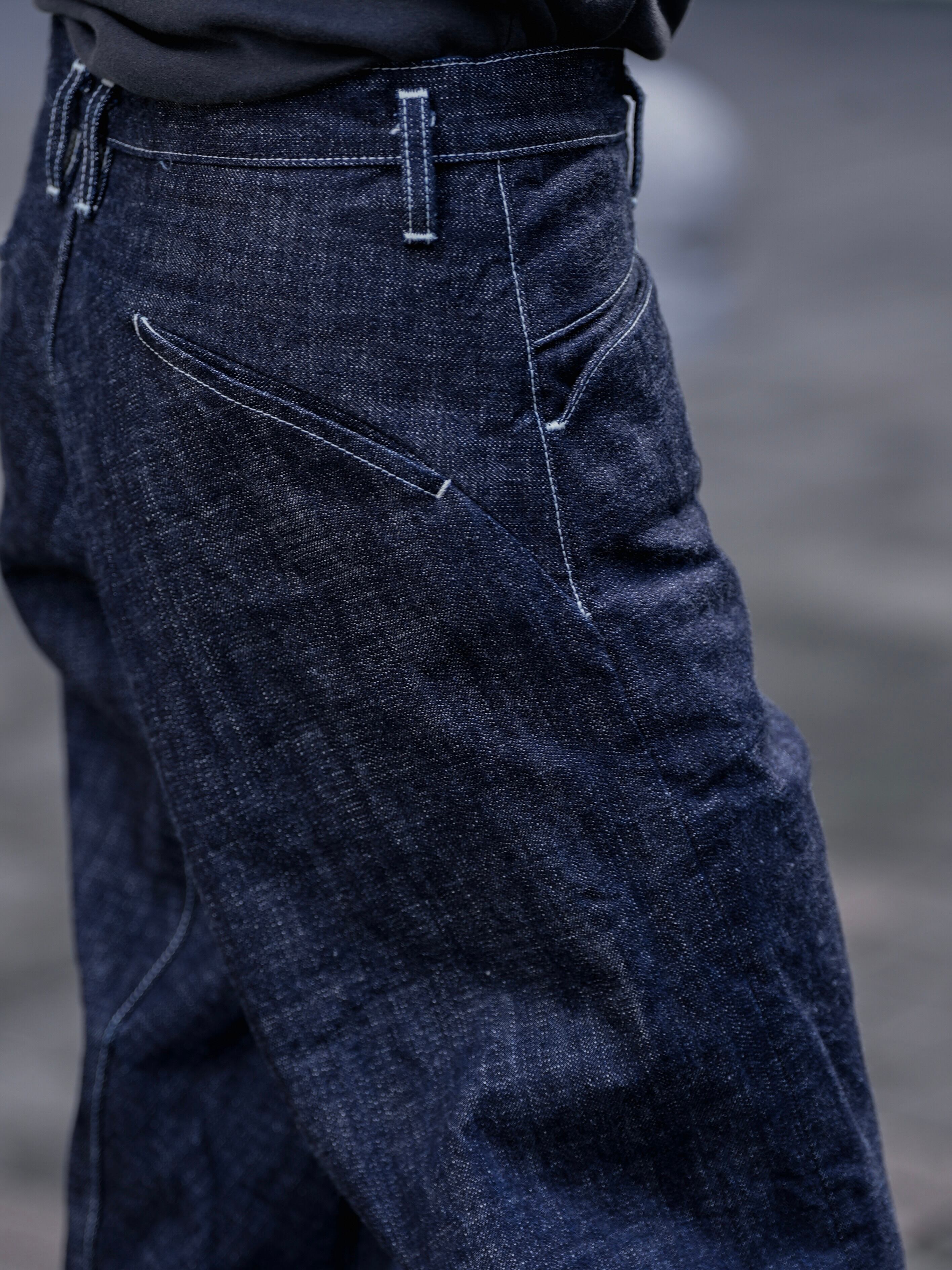 穿き込むうちに生地の綾目がねじれていき、サイドシームが正面に回り込む——そんな経年変化は、古いデニムが持つ魅力のひとつです。