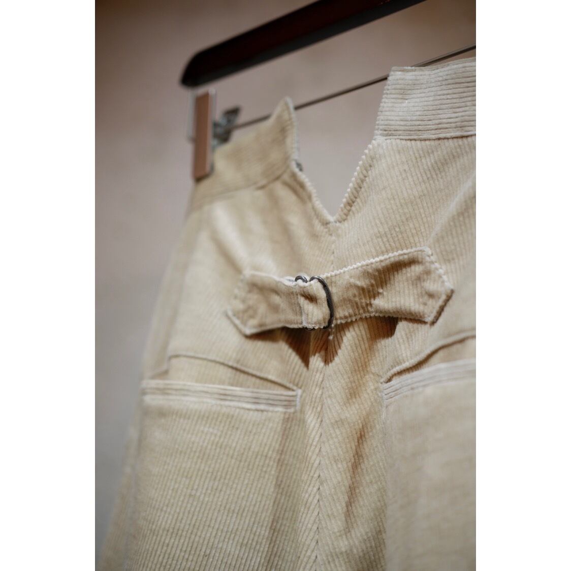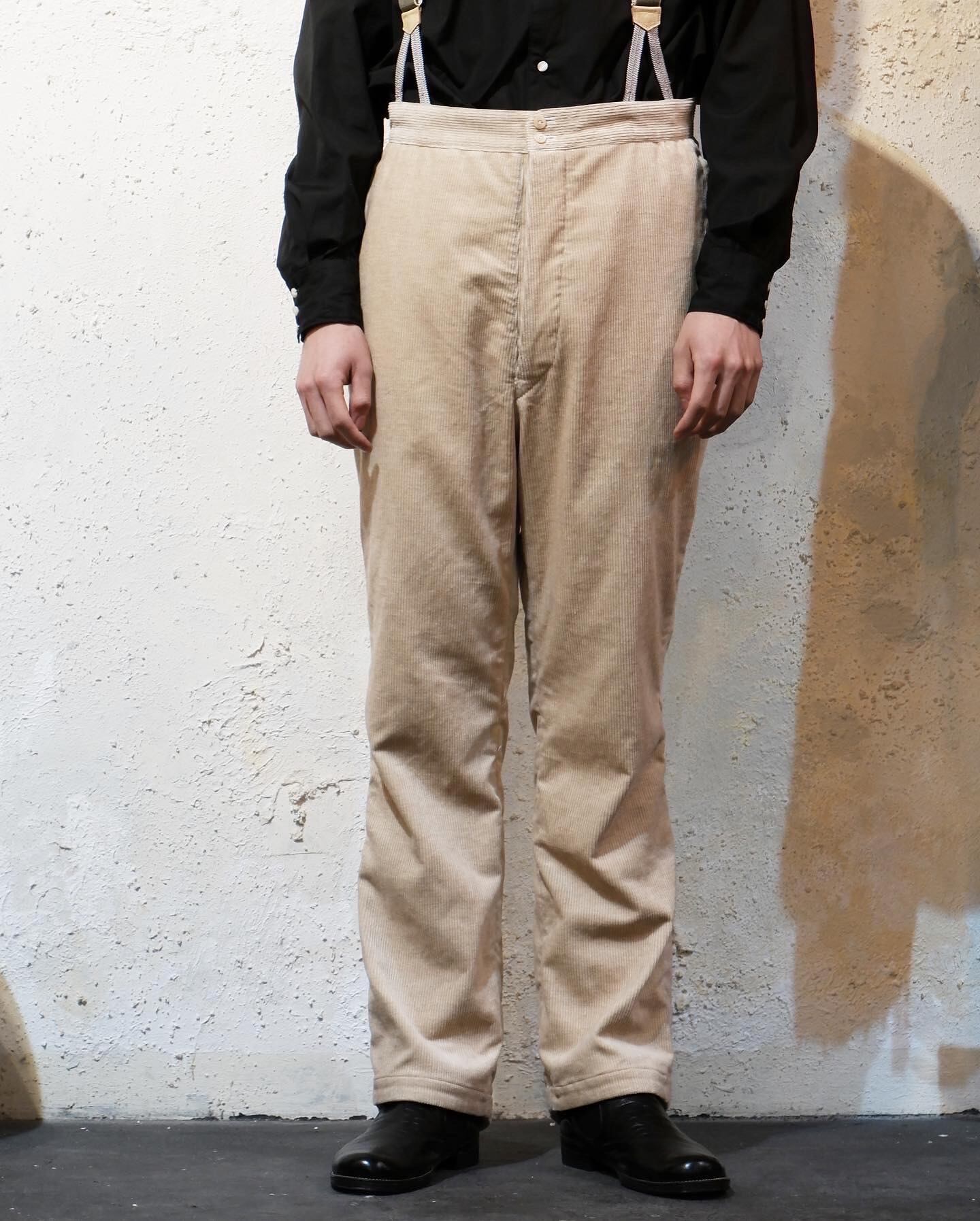 パンツ自体とても綺麗なシルエットで、サスペンダーを付けて履くことを推奨します。