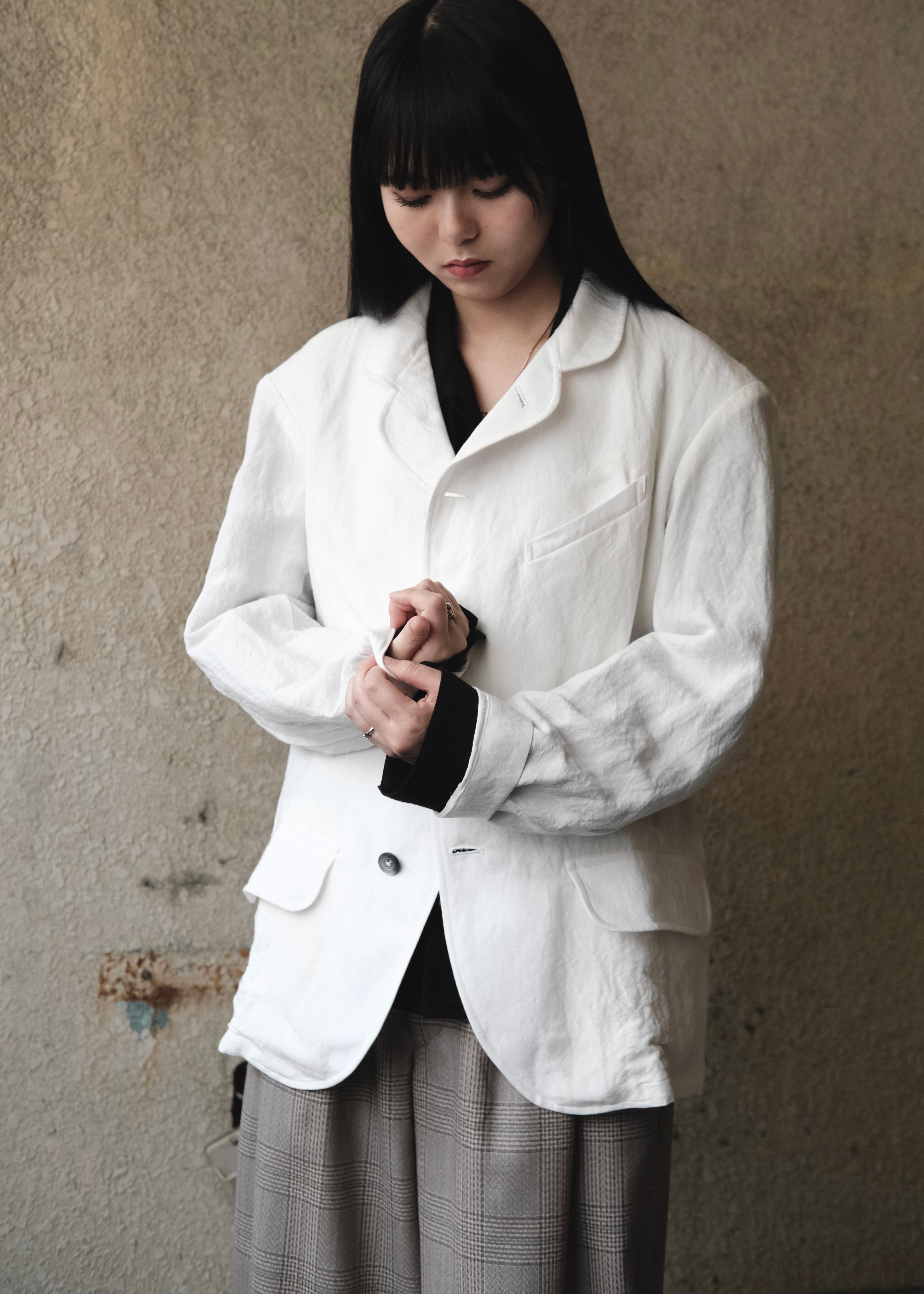 サックジャケットならではの「簡素でありながら品格のある空気感」を、現代の装いに自然に取り入れました。
